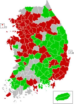 On 17 March, around 79 church devotees were infected with the virus after attending the River of Grace Community Church. The infections were claimed to have been caused by spraying salt-water into followers' mouths, under the belief that this would protect them from the virus.[82][83][84] Nearly 140 churches in Gyeonggi Province, which surrounds Seoul and is part of the Seoul Metropolitan Area, were threatened with closure if they did not implement preventive measures, including temperature checks, two-meter separation, and the wearing of masks.[85] As more churches were holding services despite a government order for social distancing, on 30 March, the controversial Manmin Central Church in Guro, Seoul became a cluster with 22 infections linked to a gathering in early March in which the group was preparing stock footage to use for online worship services. Other church clusters appeared in the cities of Suwon, Busan, Geochang, and Bucheon.[86]