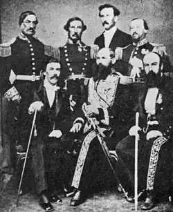 Melgarejo (center) with Prime Minister Muñoz (far-right) and other members of his ministerial cabinet.