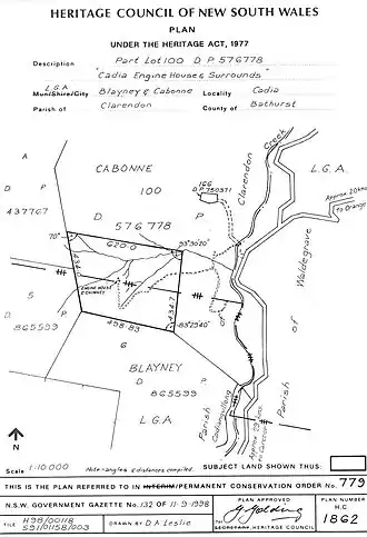 - ^ a b c d e f g h i j "Cadia Engine House & Surrounds". New South Wales State Heritage Register. Department of Planning & Environment. H00779. Retrieved 2 June 2018.