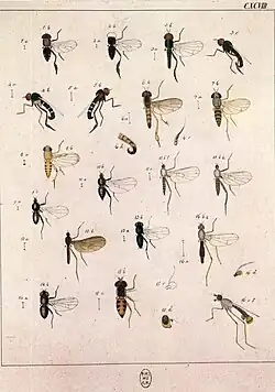 - ^ Meigen, J.W. (1804). Klassifikazion und Beschreibung der europäische n zweiflugeligen Insekten (Diptera Linn.). Erster Band. Abt. I. Braunschweig [= Brunswick]: Reichard. pp. xxviii + pp. 1–152, Abt. II. vi + pp. 153–314.