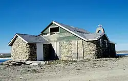 In 1954 construction was completed on the Roman Catholic Church. The church, Cambridge Bay's first, was constructed from local material using seal oil and sand as mortar, and was used for services until the 1960s.[25][29] On 27 April 2006, a large portion of the church, which had been designated a heritage site by the Hamlet Council, was destroyed by a fire which the RCMP said was deliberate.[29][30]