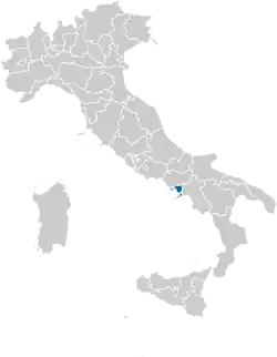 Campania 1 is one of the 29 constituencies (Italian: circoscrizioni) represented in the Chamber of Deputies, the lower house of the Italian parliament.[3] The constituency currently elects 18 deputies. Its boundaries correspond to those of the Metropolitan City of Naples, within the Campania region. The electoral system uses a parallel voting system, which act as a mixed system, with 3⁄8 of seats allocated using a first-past-the-post electoral system and 5⁄8 using a proportional method, with one round of voting.[4]