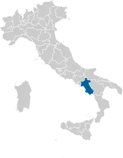 Campania 2 is one of the 29 constituencies (Italian: circoscrizioni) represented in the Chamber of Deputies, the lower house of the Italian parliament.[3] The constituency currently elects 18 deputies. Its boundaries correspond to those of the provinces of Avellino, Benevento, Caserta and Salerno, within the Campania region. The electoral system uses a parallel voting system, which act as a mixed system, with 38 of seats allocated using a first-past-the-post electoral system and 58 using a proportional method, with one round of voting.[4]