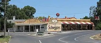 Perhaps the most notable historical building in Campbells Creek is the Five Flags Hotel, which celebrated its opening ball on Friday 1 June 1855,[10] or the Five Flags Merchants Cafe & General Store, originally opened circa 1853. The area surrounding them was known as Five Flags after the many nationalities that worked the gold fields hereabouts.[3]