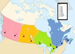 - ^ One team plays on the Saskatchewan side of Lloydminster, a city bisected by the Alberta–Saskatchewan border.