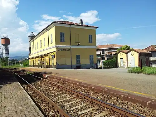 Candelo railway station (Italian: Stazione di Candelo) is a train station serving the comune of Candelo, in the Piedmont region of northwestern Italy. The train services are operated by Trenitalia at this station located on the Santhià–Biella railway.