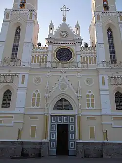In 1775, Xavier de Medeiros, right at the border of the Canindé River, started building a church for Saint Francis. Nowadays, the church is at the same place; however, it was totally reformulated by the Italian architect Antonio Mazzoti and the painter George Kau. In 1818, Canindé became a village, and on July 29, 1846, the Municipality of Canindé was declared.[2]