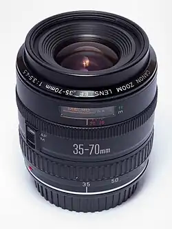 The Canon EF 35-70mm f/3.5-4.5 is an EF mount wide-to-normal zoom lens. It is one of the first lenses in the Canon EF series. It has the same zoom system and 9 lenses in 8 groups layout as the Canon New FD 35-70mm f/3.5-4.5[1] although it is unclear whether the actual optical design is identical.