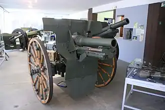 The Canon de 105 court modèle 1935 B was a French howitzer used in World War II. It was designed by the State Arsenal at Bourges to replace the Canon de 105 court modèle 1934 Schneider. Some 610 were originally ordered, although production was terminated in 1939 in favor of anti-tank guns. Only some 232 were in service when the German attacked in May 1940. Captured weapons were used by the German Heer as the 10.5 cm leFH 325(f) and assigned to training and second-line occupation units.[3] During Italy's occupation of southern France, 127 pieces were captured by the Royal Italian Army, which used it under the name Obice da 105/15.