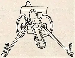 An unusual feature of the design was that the wheels, which were pressed steel with either solid rims or pneumatic tires, moved with the trail legs and "toed-in" when the gun was in action to provide more cover for the crew.