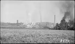 Peter G. Thomson had built Champion Coated Paper Company of Hamilton, Ohio into one of largest manufacturers of paper in the United States.[10] He visited Western North Carolina in 1905 looking for a location for a pulp mill to supply his company. The area had large forests that would supply timber. Leaders of communities farther to the west tried to convince Thomson to choose their areas. While the timber supplies were greater to the west, Thomson wanted areas with more spruce and settled on Canton, which had the type trees Thomson wanted, enough land for a mill, and the Pigeon River to move logs to the mill (Thomson later realized the river did not decline sufficiently, so railroads were used to move logs instead). Construction on the mill began in 1906. Many of the workers also had farms that they had to return to, so immigrants were hired to do much of the work.[11]