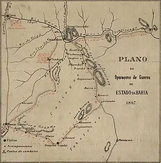 ![]() Map of the location of the fighting. The northern part is now flooded by the Cocorobó Dam | |
