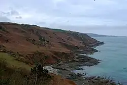 The La Hague area has precambrian granite and gneiss cliffs, several coves and small fields surrounded by hedges. France's oldest rocks are to be found on its coast in Jobourg.[1] Other rocky outcroppings on the coast include Cadomian granite in Auderville[2] and Variscan granite in Flamanville.[3]