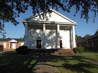 Cape Fear Baptist Church is on Butler Nursery Road in rural Cumberland County, North Carolina. The church was established in 1756 as Particular Baptist Church. The current sanctuary was constructed in 1859. It is a two-story frame gable-roof building with a monumental Greek Revival style two-story pedimented front portico.[2]