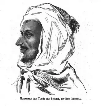 Bouchoucha was a simple Algerian shepherd who got in trouble with the French for stealing. He managed to escape to Ain Salah, where he joined forces with a tribe called Chaamba, led by Bennacer Benchohra, with them they started a resistance, capturing N’Goussa on 5 March 1871[1] before attacking Ouargla somewhere in March of the same year.[2] their main enemy was a certain Ali Bey, Agha of Touggourt[3] under the French, who had captured the city in 1854, After Ali recognized their authority.[4] After that, they head to the French controlled Touggourt to Capture it, joined by the Chaamba leader Benchohra.[5]