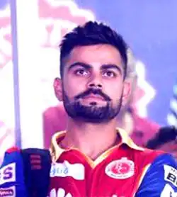 Prior to the seventh season of the IPL, Kohli was retained by Bangalore for ₹12.5 crore (US$1.5 million).[339] His campaign commenced with an unbeaten score of 49 runs in a victorious encounter against the Delhi Daredevils.[340] However, Kohli struggled to maintain his form and faced a dismissal without scoring in the second match. In a match against the Rajasthan Royals, Bangalore's batting lineup faltered, resulting in them being bowled out for 70, then third-lowest total in IPL history. Kohli contributed 21 runs to the team's total in that particular match.[341] Bangalore heavily relied on the performances of Gayle and Kohli in their batting lineup, but neither of them had managed a significant innings thus far in the season.[342] Kohli's struggles persisted as he recorded his third duck of the season in a match against the Kings XI Punjab.[343] In an effort to address the batting woes, Kohli made the decision to alter his batting position and open the innings; however, this adjustment did not yield the desired outcome.[344] With Bangalore losing six out of their nine games, Kohli had yet to reach the milestone of scoring a half-century. Meanwhile, the team was striving to secure victories in their remaining matches in order to qualify for the playoffs.[342] In his twelfth game of the season against the Sunrisers Hyderabad, Kohli achieved his first fifty of the season. However, the subsequent defeat to the Kolkata Knight Riders, with Kohli contributing 38 runs before being dismissed by Sunil Narine for the second time, led to Bangalore's elimination from playoff contention for the third consecutive time.[345] In their final match of the season against the Chennai Super Kings, Kohli showcased his best performance of the season, accumulating 73 runs. However, Bangalore suffered a defeat in that match.[346] Despite the team's challenges, Kohli's popularity continued to soar, making him the most-searched player on the internet during the tournament.[347]