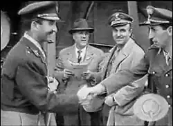 Then Major Delía shaking hands with rival Raimondo D'Inzeo of Italy, ca. 1960