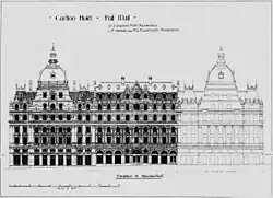 Construction of the hotel was not yet complete when Phipps died in 1897. The architectural partnership of Lewis Isaacs and Henry L. Florence were appointed to complete the building.[1] The Survey of London quoted a contemporary critic, Edwin Sachs, who commented on the hotel and theatre: "The treatment is considered to be in the French Renaissance style and stone has been used throughout. The detail cannot, however, be termed satisfactory, nor does the exterior architecturally express the purpose of the building." The Survey adds, however: "Present-day connoisseurs of late-Victorian architecture are less censorious, and many will regret the partial demolition of a building which, though overspiced with eclectic details, had considerable panache."[1][4]