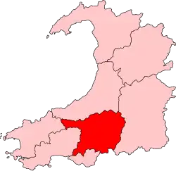 ![]() Carmarthen East and Dinefwr shown within the Mid and West Wales electoral region and the region shown within Wales | |