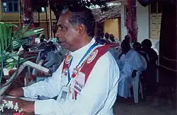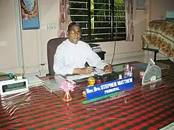 With 22 years of service, Rev.Bro.S.A.I.Mathew retired from his duty as the principal of Carmel Fatima College on 24 November 1999, his birthday. He bears the honor of upgrading the level of the school to a National School in 1993, and by the time he retired, almost 95 percent of the buildings remained in the school were either built or rebuilt by his effort.