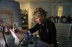 Carol Brown Goldberg (born 1940) is an American artist working in a variety of media.[1][2] While primarily a painter creating heavily detailed work as large as 10 feet by 10 feet, she is also known for sculpture, film, and drawing. Her work has ranged from narrative genre paintings to multi-layered abstractions to realistic portraits to intricate gardens and jungles.