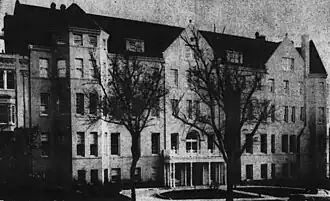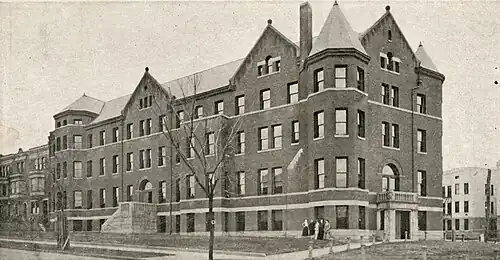 Work began on the St. Catherine's Home project on March 21, 1900, when a small group of sisters and prominent Catholic citizens gathered to break the ground on the site.[12] Construction of the building cost around $80,000 and was finished later that year. At a ceremony on October 14, 1900, Cardinal James Gibbons blessed the building with holy water and prayer. By then, the institute had already filled 40 of its 46 beds.[7] Alongside residence, the Sisters of Mercy offered those staying at the home opportunities to develop their education and employability: they planned to host reading circles and connect unemployed women with local employers.[4]