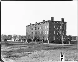 The Sisters of Mercy religious order was founded in 1831 in Ireland by Catherine McAuley as a way for religious sisters to promote education and health care through Catholic principles.[9]: 52 In 1852, a group of the Sisters of Mercy from Pittsburgh began working in the Archdiocese of Baltimore (which then encompassed the District of Columbia) and operated the Washington Infirmary hospital.[10]: 50 The community separated from Pittsburgh in 1858 and the new Baltimore Community maintained operation of the Infirmary.[10]: 60 Following an 1861 fire at the Infirmary and the outbreak of the American Civil War, the sisters were given control of the Douglas Hospital, a military hospital housed in the former residences of politician Stephen Arnold Douglas.[4][10]: 62–63