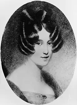 She was highly intelligent and received a good education. She could converse in French and Italian, was well-versed in Latin, and played pianoforte and harp.[2] In 1836, at West Hackney (perhaps on York Road near modern Dalston?), she married Charles James Carleton, a medical student working at Guy's Hospital and who could claim a family connection with the Earls of Dorchester.[3] Together with their two young children (James Poole Carleton born 23 April 1839 and one other) they left for Australia in 1839, on the Prince Regent. It was a rough passage and both children died and were buried at sea. The passengers disembarked at Glenelg on 26 September 1839.