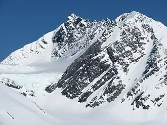 Carpathian Peak is a prominent 6,000+ ft (1,830+ m) mountain summit located in the Kenai Mountains, in the U.S. state of Alaska. The peak is situated in Chugach National Forest, 8 mi (13 km) southwest of Whittier, Alaska, at the isthmus of the Kenai Peninsula, where the Kenai Mountains meet the Chugach Mountains. Although modest in elevation, relief is significant since the eastern aspect of the mountain rises from sea level at Blackstone Bay in Prince William Sound. The peak's nearest higher peak is Isthmus Peak, 8 mi (13 km) to the south, and nearby Bard Peak lies 5 mi (8.0 km) northeast. The mountain's name was officially adopted in 1959 by the United States Geological Survey.[3] The 1959 first ascent party of Keith Hart, Ted Barrett, and Mat Nitsch suggested the name as a tribute to the Carpathian Mountains back in Mat's homeland which at the time was behind the Iron Curtain, with the intention to create a symbol of freedom.[3]