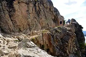 The trailhead is at the South Jenny Lake parking area and follows the Jenny Lake Trail around the south shore of Jenny Lake to the Forks of Cascade Canyon.[2] The trail passes near Hidden Falls after almost 3 miles (4.8 km) then goes west into the heart of Cascade Canyon, flanked by Teewinot Mountain and Mount Owen to the south and The Jaw and Rock of Ages to the north.[3] At the Forks of Cascade Canyon, the trail splits with the Lake Solitude Trail heading to Lake Solitude and Paintbrush Divide, while the South Fork Cascade Canyon Trail leads to Hurricane Pass.[2] There are no camping areas along the trail though not far from the Forks, camping zones exist to the north and south.[4] At South Jenny Lake, a boat shuttle operates during the summer which shortens the hike by 4 miles (6.4 km).[2]