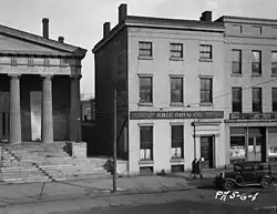 The Cashier's House was designed by the Philadelphia architect William Kelly, and was built in 1839 as part of a complex; the other components of the development were the Coach House and the Old Custom House. The Cashier's House was built primarily as the residence for the chief executive officer of the next door Erie Branch of the Bank of the United States.[3] The bank closed in 1841, but the cashier of the bank continued to live in the house until his death in 1843.[3] In 1850, the house was sold for $4,000 ($134,986 in present-day terms) at half of its original cost.[3] The Cashier's House was bought by Samuel Woodruff in 1872.[4] The Woodruffs occupied the Cashier's House until 1913, leading the house to sometimes be referred to as the "Woodruff Residence" or "Woodruff House."[3][5]