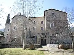The castle of Gagliano Aterno was constructed between the late 12th century and early 13th century by the Berardi, known as the Counts of Marsi, once they came into possession of the County of Celano in 1143, to which the fief belonged.[3] It was expanded in 1328 by Countess Isabella d'Aquino.[2] The fief of Gagliano Aterno, along with its castle, followed the fortunes of the county and over time was inherited directly by various members of the Berardi house[3] and then by its derivative families, first the Ocre family[4] and later the Celano family.[5] Specifically, the castle primarily followed the lineage of Odorisio of Ocre, son of Offreduzio,[4] then the succession: Oddone da Celano; Pietro, Riccardo, and Nicolò da Celano; Ruggero da Celano; Tommaso da Celano; Ruggero da Celano; Pietro, Matteo, and Paolo da Celano; Nicolò da Celano, eventually converging in his last daughter Jacovella da Celano. Through her third marriage, she brought the castle as a dowry to her husband Lionello of the Accrocciamuro family and then to their firstborn son Ruggero Accrocciamuro.[5] From November 15 to 17, 1462, the castle was damaged and looted during the siege by Jacopo Piccinino and his army, in collusion with Ruggero Accrocciamuro, who sought to force his mother Jacovella da Celano, who had taken refuge inside, to recognize his feudal succession rights over the County of Celano.[6][7] The fief of Gagliano Aterno, along with the castle, passed the following year to Antonio Piccolomini d'Aragona, who repaired it and added two defensive walls.[2] Subsequently, it passed to the Barberini and then to the Sciarra-Colonna, who held it until 1806, when it was acquired by the Pietropaoli family, eventually ending up with the Lazzaroni family.[8] The castle is used as a private residence, but parts of the ground floor are open to visitors.[8]