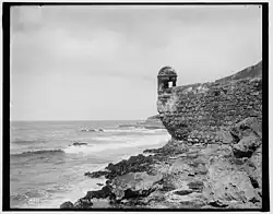 Most of San Juan's fortified walls have guerites (sentry boxes, "garitas" in Spanish) at various points. One of the guerites at San Cristóbal is the Fortín del Espigón ("breakwater fort"), most commonly known as the Garita del Diablo ("devil's sentry box"). It offers a vantage point to watchmen guarding the seashore while protecting them. This particular sentry box is one of the oldest parts of the fort, being built in 1634.[16]