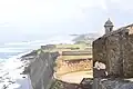 From top, left to right: Front of main fortification in San Cristóbal from northern section of the Walls of Old San Juan overlooking the Atlantic; Garita del Diablo ("devil’s sentry box") or Fortín del Espigón ("breakwater fort"); curtain wall where demolished part used to connect; curtain wall and third-level battlements on Caballero de San Miguel (Saint Michael Cavalier); main fortification of fortress; main courtyard or bailey with cisterns visible on far right; Batería y Plaza de Santa Teresa (Saint Teresa Battery and Plaza) and glacis from inside WWII bunker; Revellín de San Carlos (Saint Charles Ravelin), Revellín El Abanico (The Fan Ravelin), and Batteria de la Princesa (The Princess Battery) from third-level battlements; Contraguardia de la Trinidad (Trinity Counterguard) and deep dry moats; ramped and gated entrance from Plaza Norzagaray; panorama onto Old San Juan, San Juan Bay, and Santurce from third-level battlements