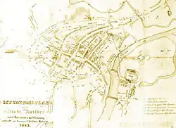 In 1988, the city authorities, along with the Catholic Church, reached an agreement regarding the renovation of the castle chapel. During the renovation work, a map dating back to 1843 was found in the small tower on the spire. The map depicted the urban development of the city in 1843 and 1858, thanks to handwritten annotations.[5][17]
