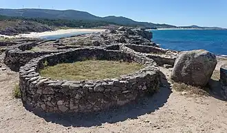 The Castro de Baroña is an Iron Age fortified settlement located in the parish of Baroña, a municipality of Porto do Son in the province of A Coruña (Galicia, Spain. GPS Co-ordinates: 42°41'41.40"N 9°1'57.10"W). The settlement, surrounded by two walls and containing twenty roundhouses that still remain today, was built on a peninsula and inhabited from the 1st century BC to the 1st century AD.[1]