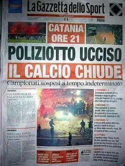 The riot's sole fatality was police officer Filippo Raciti.[8][9]