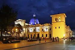 The building is located on the west side of Caldas Park in the historic center of the city of Popayán[3] (Cauca) in the South American country of Colombia.[4] It is Metropolitan Cathedral and Basilica minor. It is the cathedral of the Archdiocese of Popayan, seat of the Archbishop and Metropolitan Chapter.