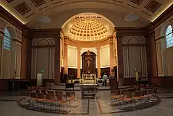 In 1912, after its neighborhood had become mainly non-residential, the diocese named St. Paul's as its cathedral. Then its chancel was remodeled with a coffered and gilded half-dome, elaborately carved wood reredos, a chancel organ and choir benches. The new chancel's architect was Ralph Adams Cram, known for such landmark Gothic churches as All Saints', in the Ashmont neighborhood of Boston, and the Cathedral of St. John the Divine in New York City.