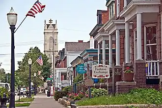 Cathedral Historic District is a nationally recognized historic district located in Dubuque, Iowa, United States. It was listed on the National Register of Historic Places in 1985.[1] At the time of its nomination it consisted of 124 resources, which included 96 contributing buildings, one contributing site, one contributing structure and 26 non-contributing buildings.[2] The district was the first residential area in Dubuque, and developed into a tightly knit neighborhood. It is located west of the original commercial district and below the bluffs of the Mississippi River that rise steeply to the west. Although its original structures no longer stand, its historic buildings are largely from the mid to late 19th century. St. Raphael's Cathedral complex, from which the district receives its name, was important in serving immigrants, including most of the Irish immigrants to the city, and in building ties. In 1985, the district was deemed to have retained "most of its original character and fabric" from the late 1800s.[2] Washington Park (contributing site), J.H. Thedinga House (1855), Fenelon Place Elevator (1882; contributing structure), and Redstone (1888) are all individually listed on the National Register.