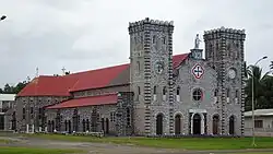 Cathedral of Our Lady of the Assumption (French: Cathédrale Notre-Dame-de-l'Assomption de Matâ'Utu), also known as Matâ'Utu Cathedral, is a Roman Catholic cathedral, and a national monument of France, located in the town of Mata Utu on Uvea, in Wallis and Futuna. It is a dominant edifice in downtown Mata-Utu town, capital of Wallis Island. It bears the royal insignia of Wallis, a Maltese cross between its towers.[1] The cathedral is also known as the "Our Lady of Good Hope Cathedral".[2] It is the seat of Bishop Susitino Sionepoe.[3]