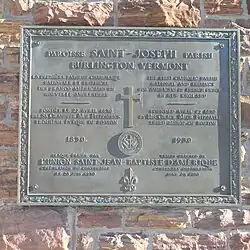 Col. Archibald Hyde donated land for the first Catholic Church built in Burlington, which served both Irish and French Canadian immigrants. The French-speaking members felt like second-class citizens in the predominantly Irish congregation.[1] After raising the necessary funds and another donation of land, St. Joseph's parish was established as the first French Canadian parish in the United States in 1850.[2] A church was constructed to serve the growing French-speaking Canadian population that had immigrated to the North End of Burlington during the mid-19th century.