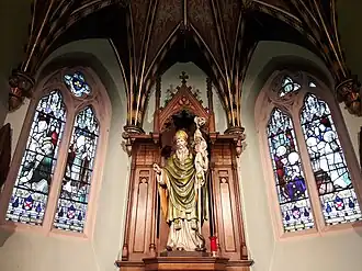 A memorial chapel dedicated to Our Lady Immaculate and St Edmund of Abingdon, patrons of the Diocese of Portsmouth, was created at the east end of the north aisle in memory of Bishop Vertue.[6] A bronze statue of St John the Evangelist by sculptor Philip Jackson was unveiled in 2010 and stands eight feet tall outside the cathedral.[7]