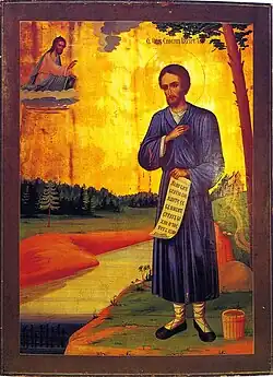 Icon Saint Simeon of Verkhoturye Praying to the Savior (1903)