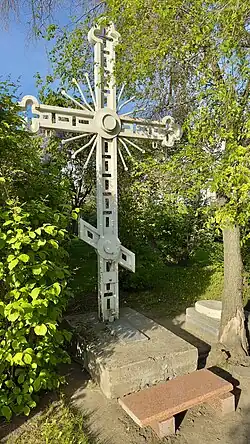 On August 18, 1991, a memorial cross was erected where the cathedral's altar stood, with an annual moleben held there on Saint Catherine's memorial day. In 1998, for Yekaterinburg's 275th anniversary, a five-domed stone Chapel of Saint Catherine was built nearby, designed by architect A. V. Dolgov. In December 2010, the relics of Great Martyr Catherine were brought to the chapel in a procession, a first for Yekaterinburg.[87][81][88][61][42]