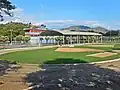 The main campus of Unileste, in Coronel Fabriciano, has about 128 thousand m2, of which 18 thousand m2 were built-up areas until 2008.[28] This unit is equipped with the Padres do Trabalho Auditorium (with 99 seats), Mr. Zezinho Auditorium (110 seats), the Aldir Castro Chaves Sports Center (three sports courts and two fields), and laboratories in the areas of chemistry, electronics, mechanics, electricity, telecommunications, and industrial automation. The Padre de Man School is also located on the Coronel Fabriciano campus.[29] Below the university center's parking lot runs the Caladinho Stream, whose stretch of the stream is canalized.[30] The Unileste unit in Ipatinga, in turn, corresponds to the School of Health.[28]