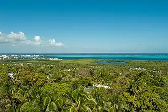 The Cayos Miskitos-San Andrés & Providencia moist forests ecoregion (WWF ID:NT0110) cover the forested areas of four islands in the western Caribbean Sea - Cayos Miskitos and the Corn Islands off the east coast of Nicaragua, and San Andrés and Providencia Islands farther east and belonging to the nation of Colombia. The forests on San Adres and Providencia have been heavily degraded by agriculture - coconuts on San Andres, oranges on Providencia. A significant feature of the ecoregion is the surrounding corals reefs, which are large and well preserved. While not technically a part of this terrestrial ecoregion, they are related to the islands.[1][2] [3] [4]