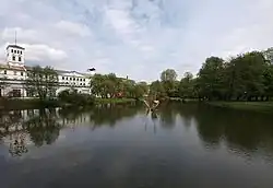 The White Factory—the seat of the museum—is a complex of classicist buildings erected by the family of Ludwik Geyer in the years 1835 – 1886.[1] It is considered one of the most beautiful and unique monuments of industrial architecture in Poland. It owes its exceptionalness to the four-wing mill, the building of the Old Boiler House in the middle of a big courtyard, a high chimney, two dust towers and two water-towers. The process of renovating and adjusting the White Factory to the museum's objectives began in 1955, when authorities took a decision to designate it as the future location of the museum.
