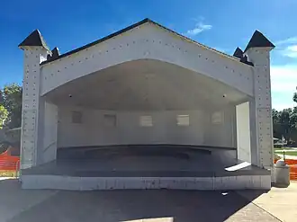 The Central Park Bandstand, also known as the Music Pavilion, is a historic bandshell located within Central Park in Orion, Illinois. The bandstand was built in 1913 following a series of successful outdoor concerts in the park. Local engineer J. C. Ericson built the structure in the then-recently popularized bandshell form, which projected sound toward the audience through its rear wall. The bandstand was completed in three weeks; its opening concert hosted the largest crowd that the park had ever held until that time. From its inception until 1925, the bandstand continued to host concerts, usually once per week; movie screenings and church services were also held at the bandstand. Beginning in 1947, the bandstand became an event stage for the Midwest Corn Show, which later became the Orion Fall Festival; the structure is now mainly used during the festival.[2]