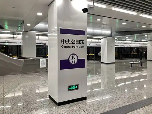 Central Park East Station is a station on Line 9 and Line 10 of Chongqing Rail Transit[2] in Chongqing municipality, China. It is located in Yubei District and opened in 2017.[1]